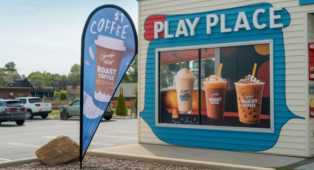 Street-side advertising thrives on visibility, and teardrop banners deliver just that. Their unique shape and movement in the wind naturally draw attention, making them hard to ignore. Placing them outside your store or along a busy sidewalk can increase foot traffic significantly.